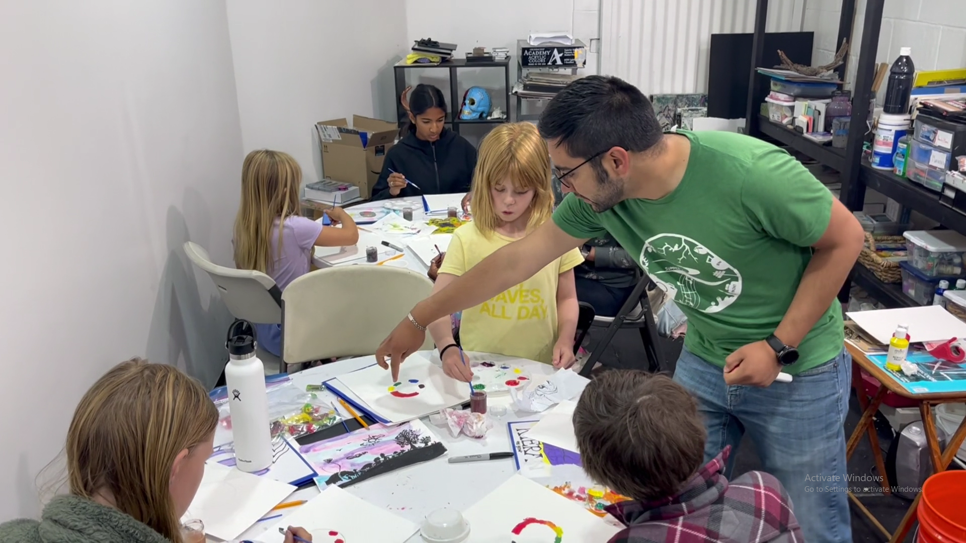 While we love the creative process, we prioritize our students' physical health. To ensure students aren't sitting at a desk or hunched all day, we incorporate regular stretch breaks throughout the day. These breaks are essential for keeping students refreshed, active, and energized while they create.